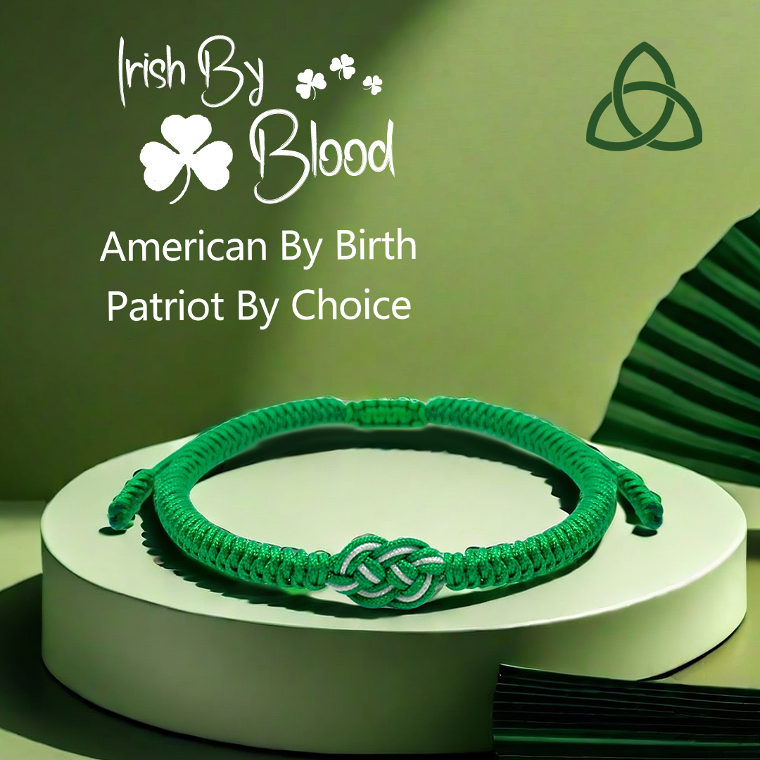 Irish By Blood American By Birth Patriot By Choice Celtic Knot Green Braided Bracelet
