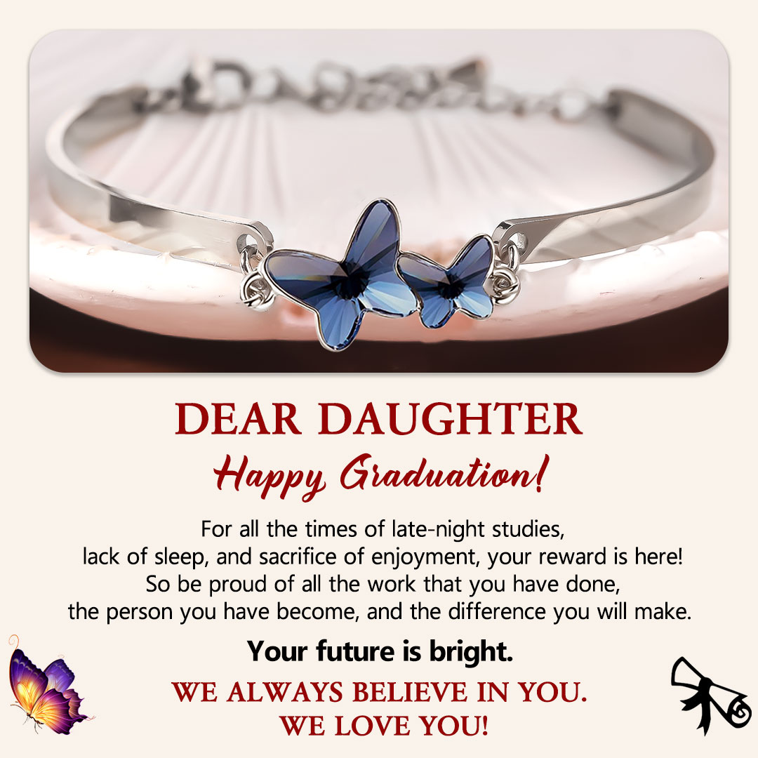 For Daughter - Happy Graduation We Always Believe In You Blue Butterfly Crystal Bracelet