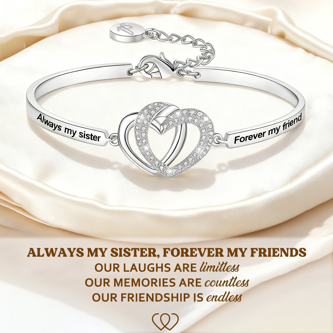 Always My Sister Forever My Friends Double Heart Bracelet