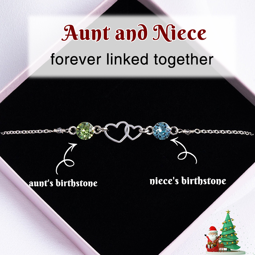 Custom Aunt and Niece Forever Linked Together Double Heart Birthstone Bracelet