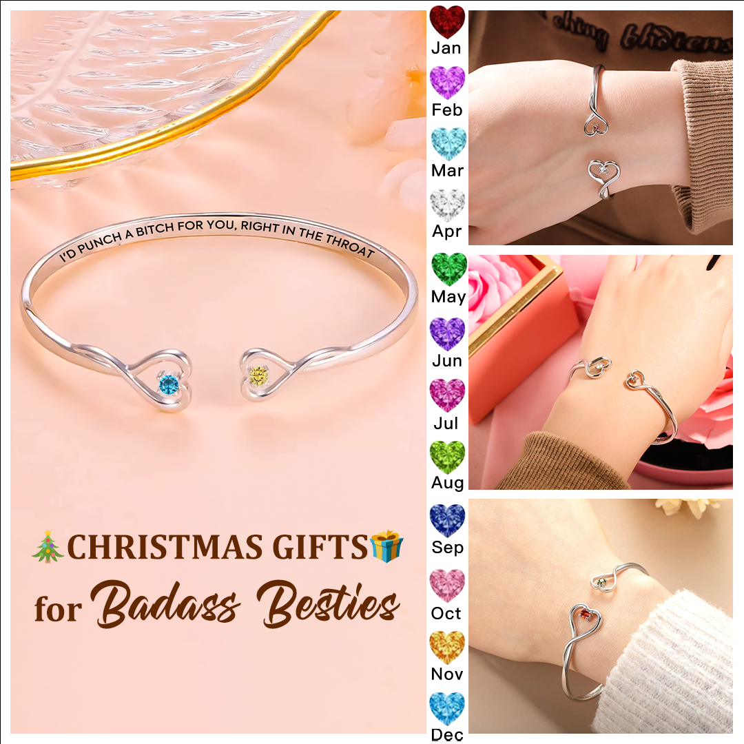 For Friend- I'd Punch a Bitch for You Double Heart Birthstone Bracelet