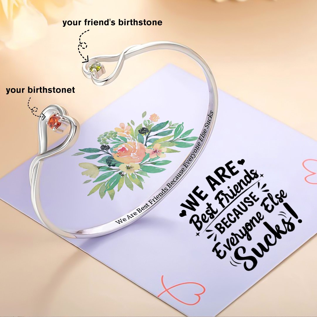 For Friend-We Are Best Friends Double Hearts Custom Birthstones Bracelet