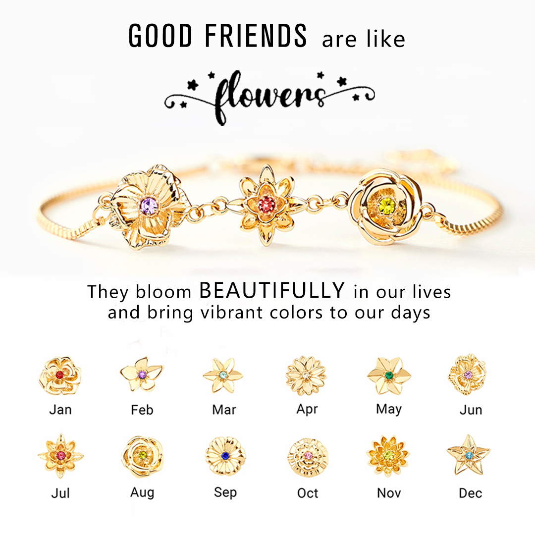 For Friends- 1-10 Three-Dimensional Custom Birth Flowers Bracelet
