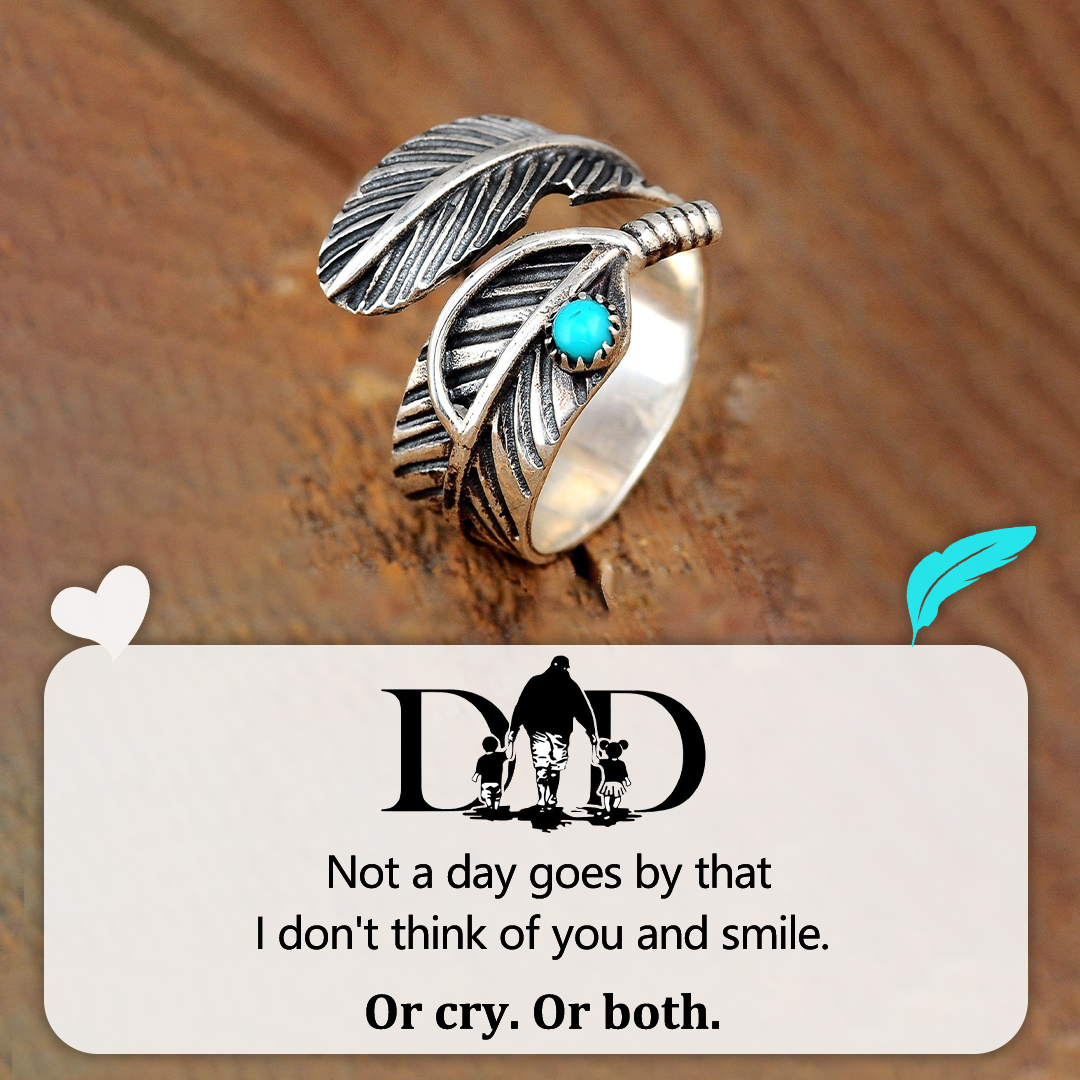 For Memorial - I Miss You Every Day Dad Feather Turquoise Ring