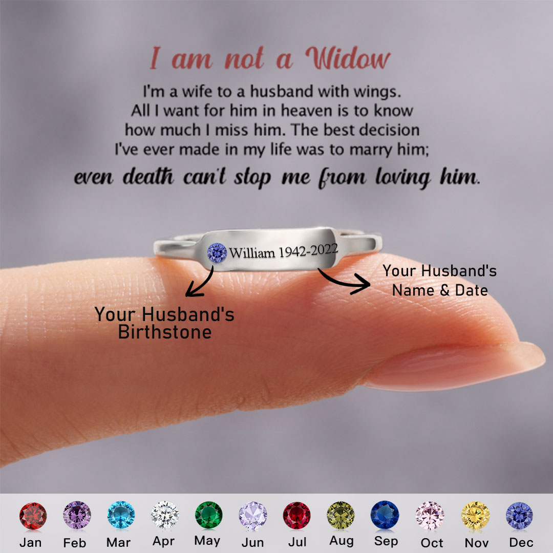 For Memorial - S925 Personalized Birthstone Husband Name Memorial Ring