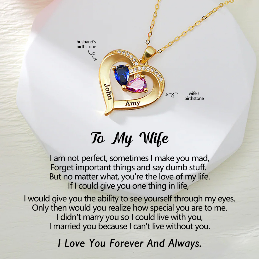 For Wife - I Love You Forever & Always Customized Double Birthstones & Names Necklace