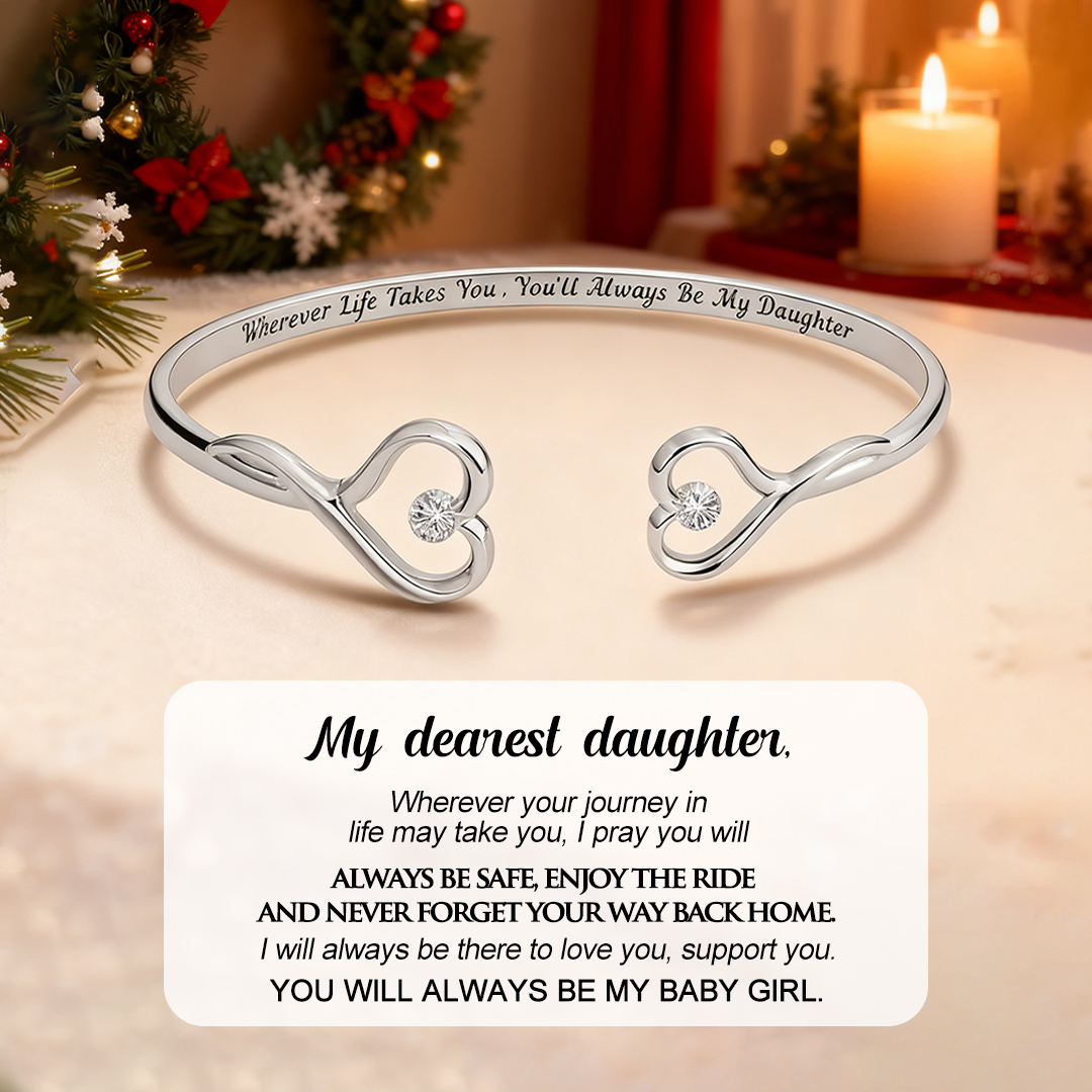 You Will Always Be My Baby Girl Double Heart Style Engraved Bracelet