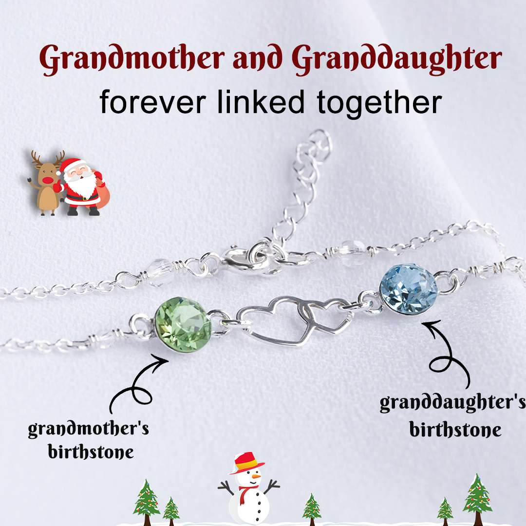 Grandmother And Granddaughter Forever Linked Together Double Heart Birthstone Bracelet