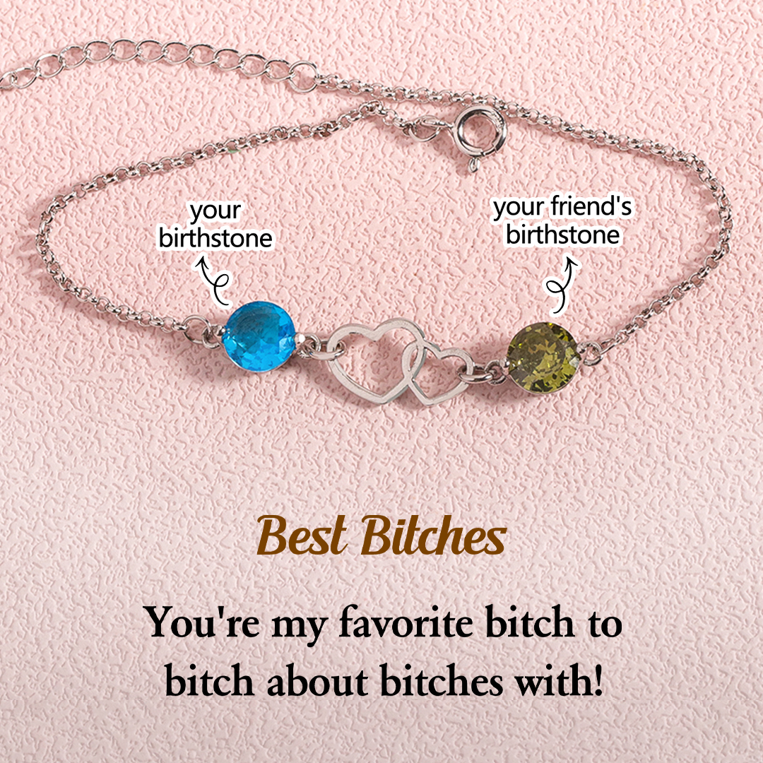 Best Bitches Double Heart Custom Birthstone Bracelet