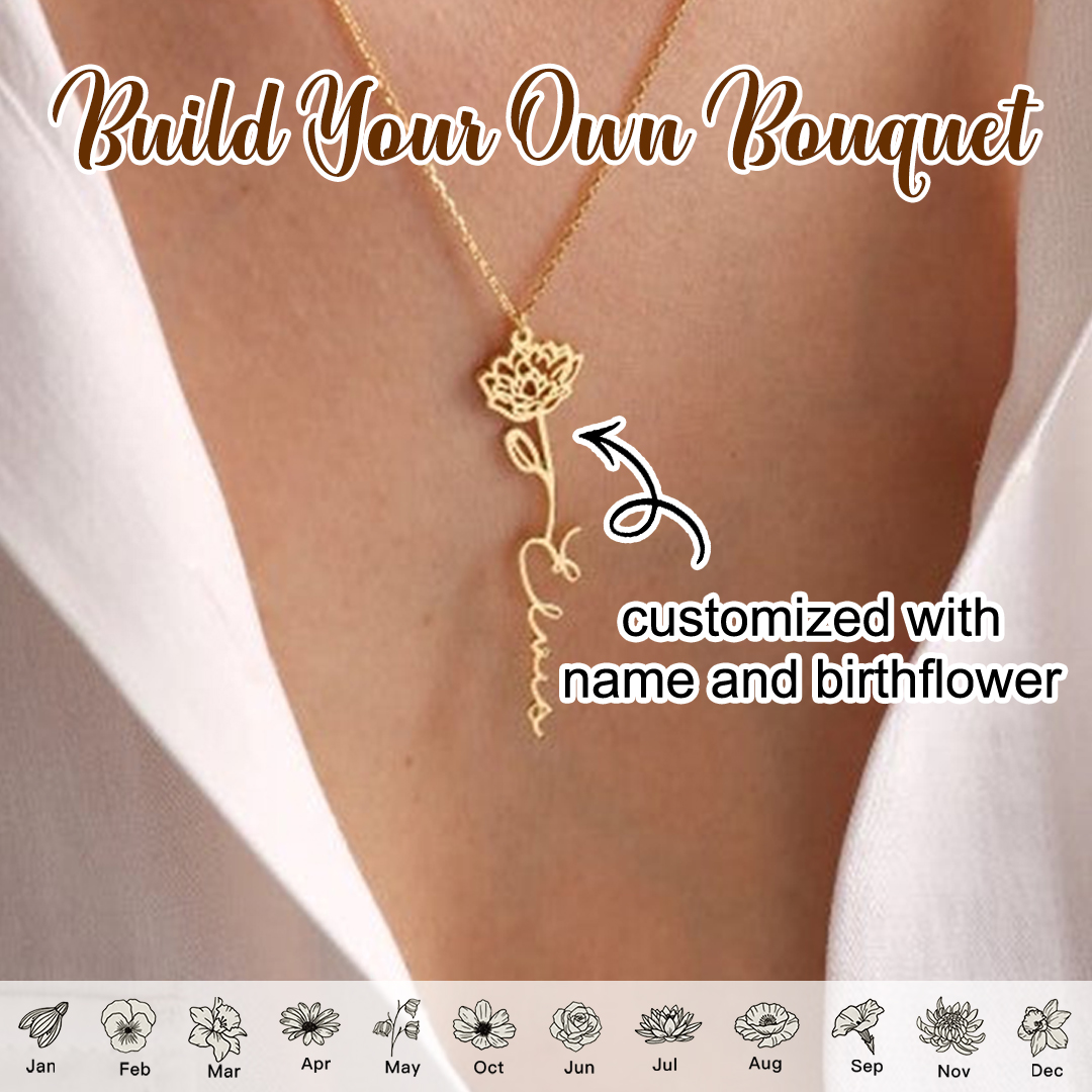 Build Your Own Bouquet Birthday Flower Name Custom Necklace