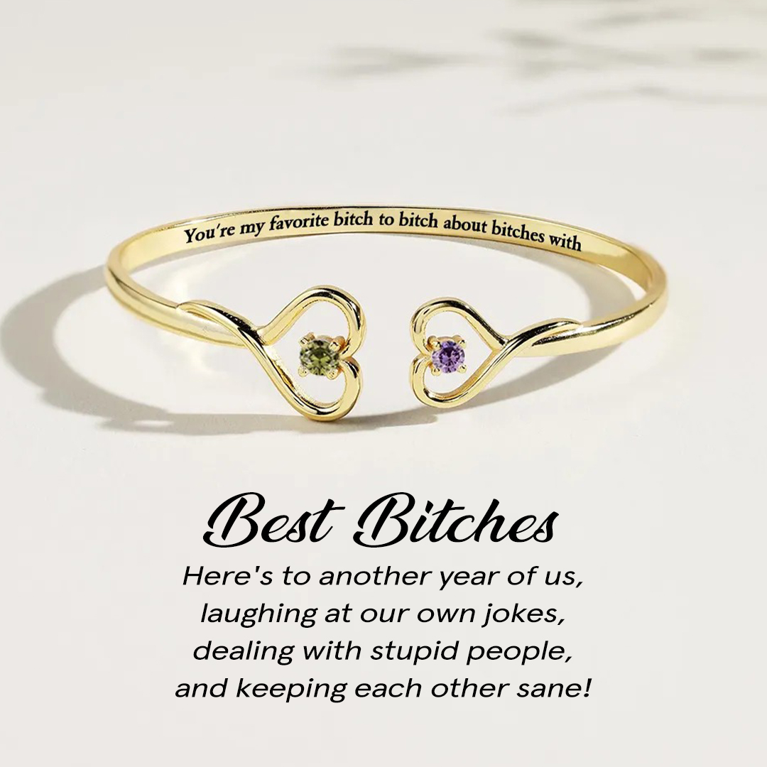 For Friend - Best Bitches Double Hearts Custom Birthstones Bracelet