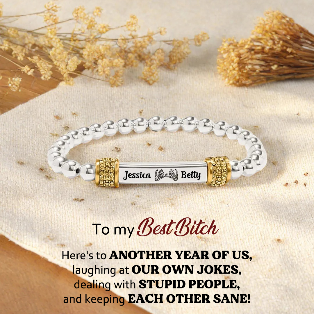 For Friend - Here's to another year of us Customized Name Bead Bracelet