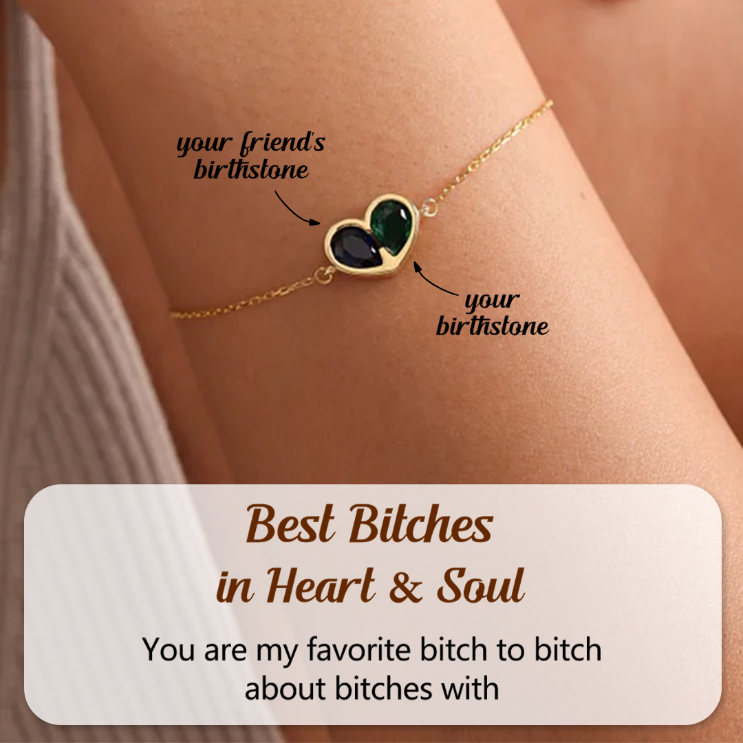 For Friend- Best Bitches in Heart & Soul Custom Heart Birthstones Bracelet
